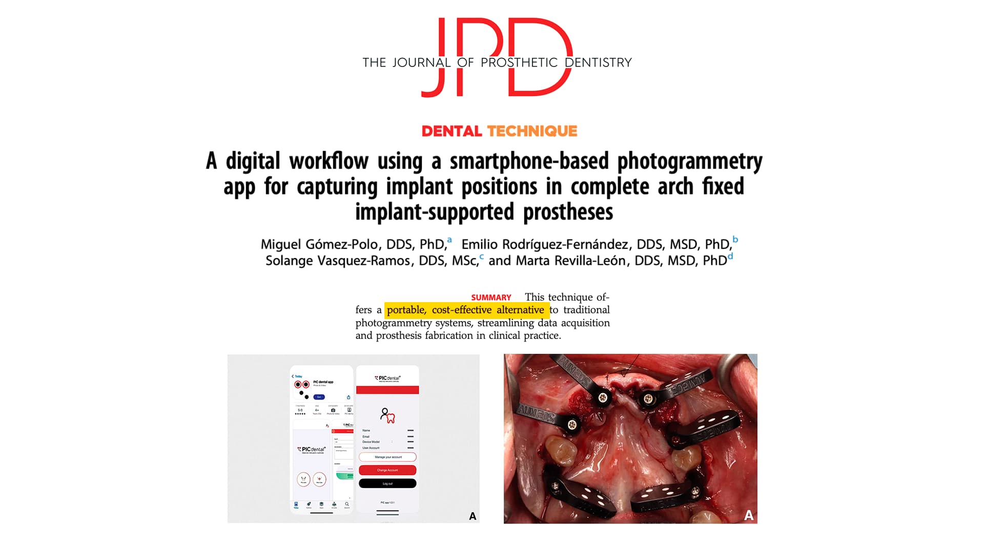 Este es el primer artículo de técnica clínica de PIC app revisado por expertos que describe un flujo de trabajo de fotogrametría basada en smartphone para capturar posiciones y angulaciones de implantes en restauraciones de arcada completa, validando lo que los profesionales de todo el mundo han experimentado desde el lanzamiento de PIC app.